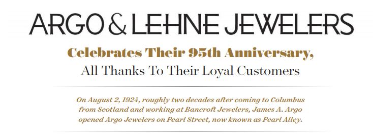 On Thursday, November 14, 2019 from 5-7 p.m., Argo & Lehne Jewelers, at 3100 Tremont Road in Upper Arlington, will celebrate its 95th Birthday with an exceptional evening filled with live jazz, heavy hors d’oeuvres, specialty cocktails and a roaring good time! The evening will include: