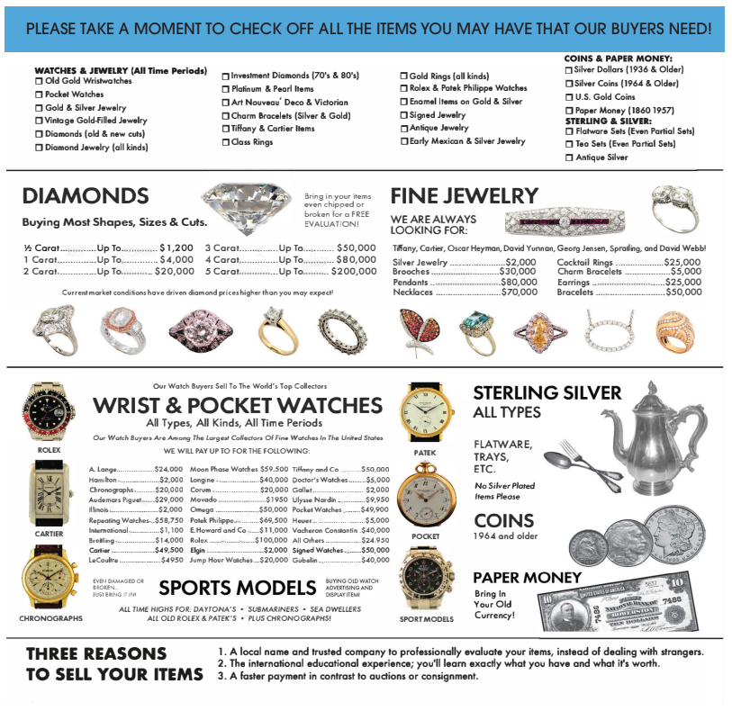 For those unused valuables cluttering your life, we offer a no obligation evaluation.