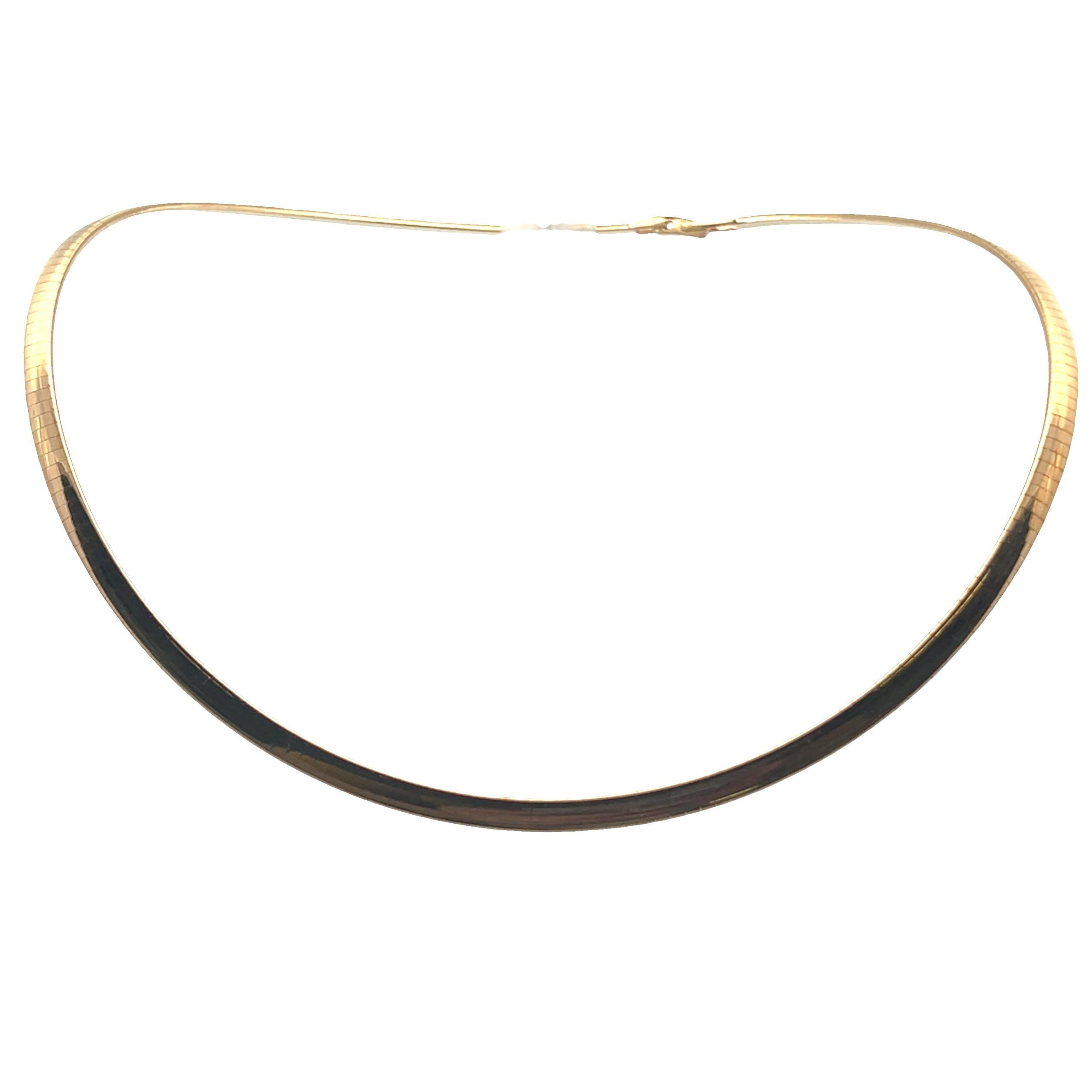 14 Karat yellow gold 17″ 4.2 mm omega necklace with foldover clasp. Pre-owned.