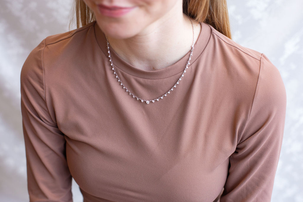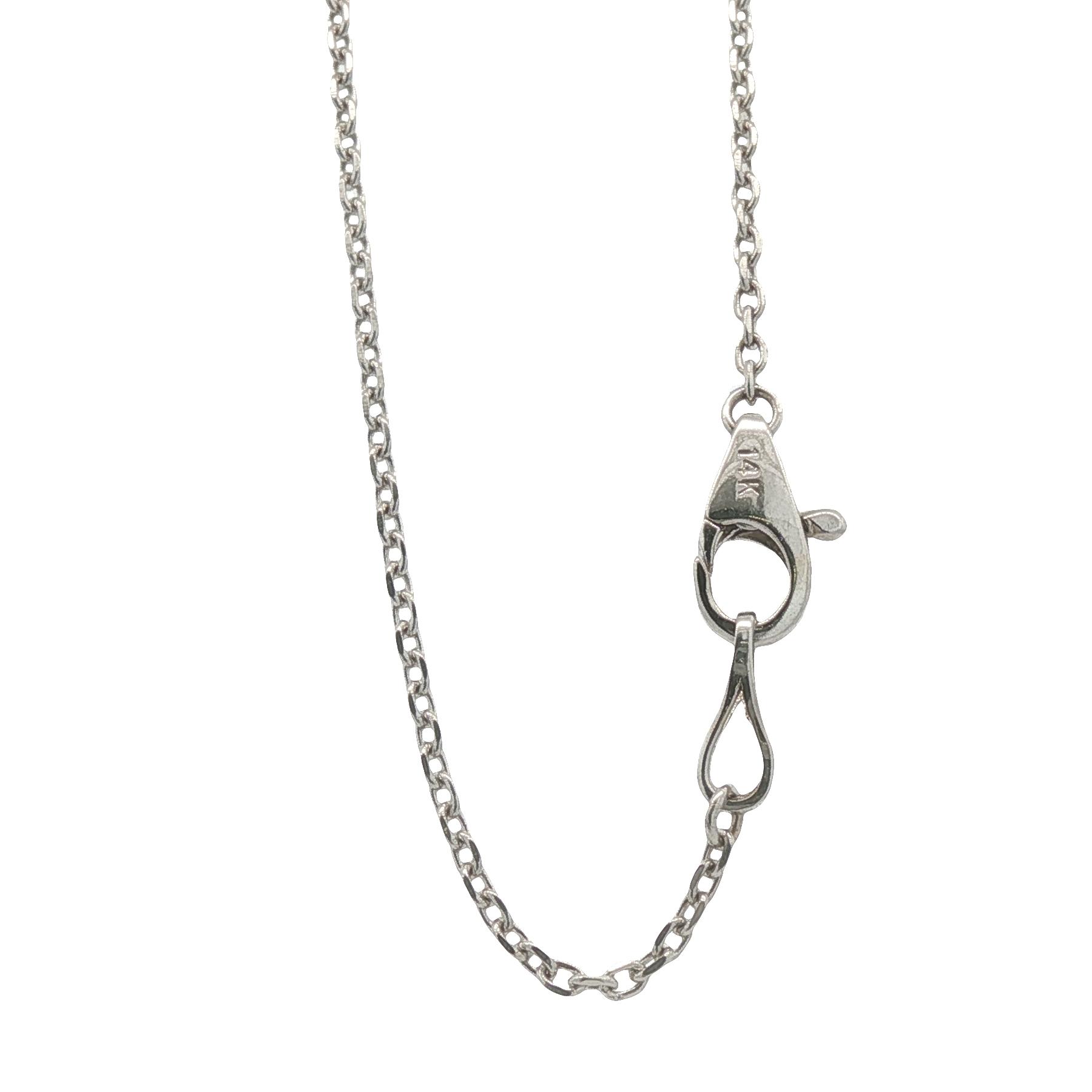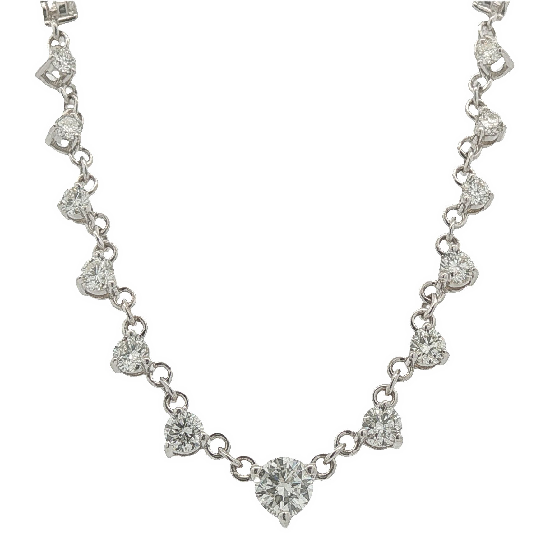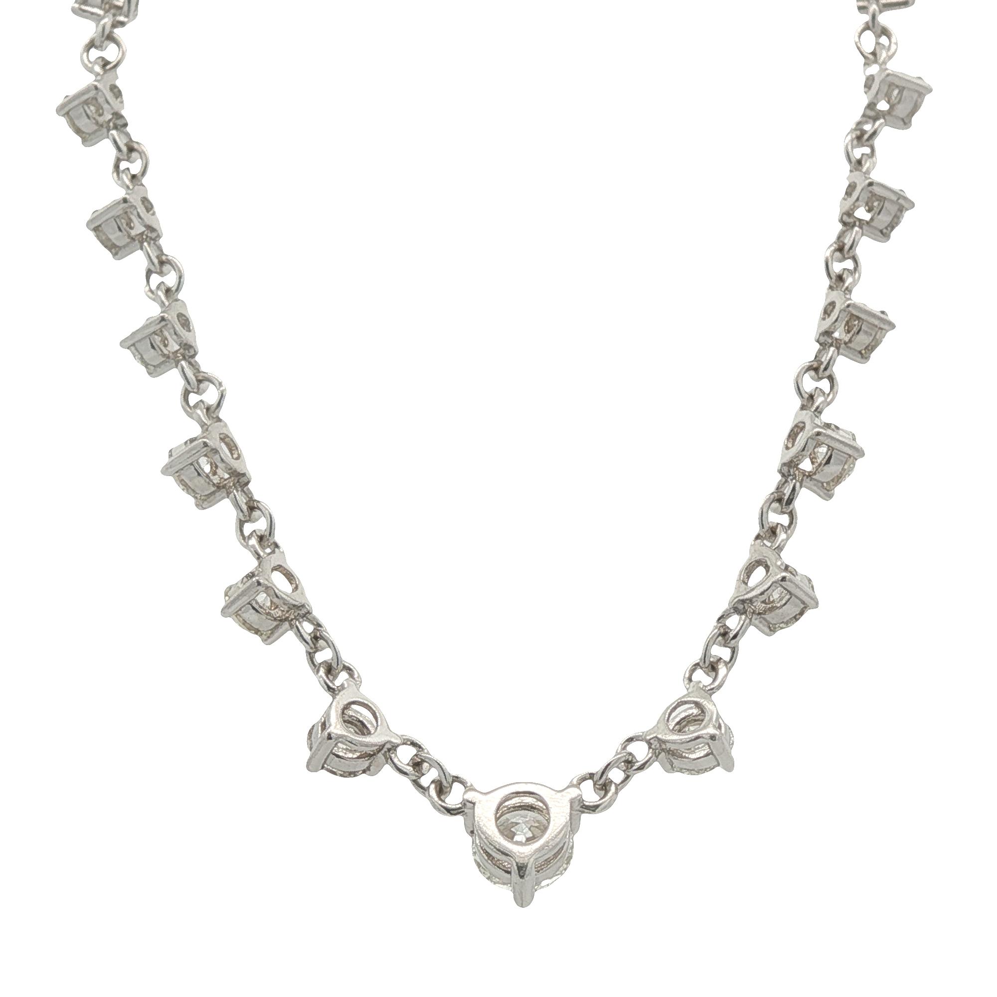 14 Karat white gold chain graduated necklace set with 35 diamonds totaling 2.26 carats. 17″