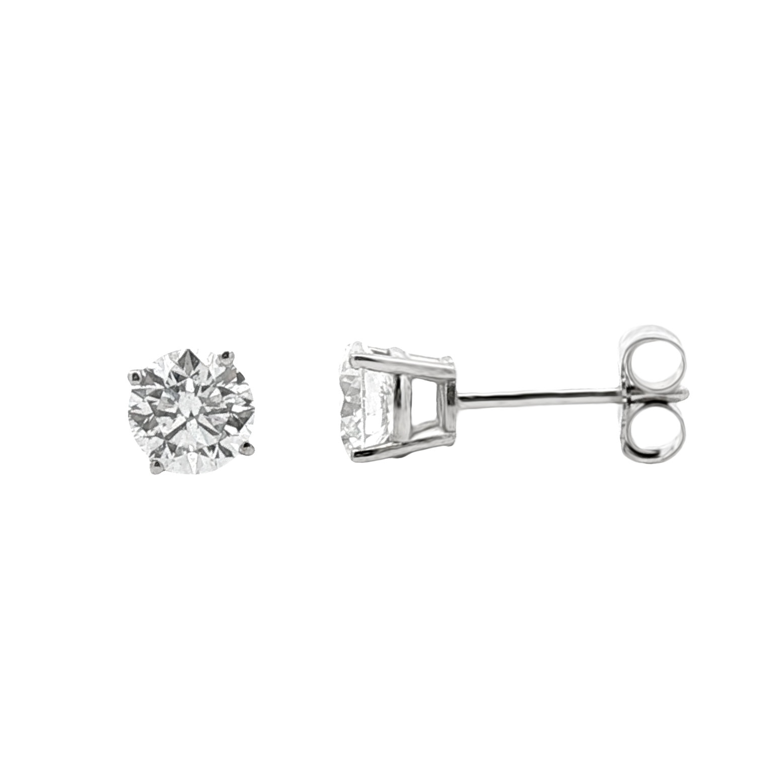 14 Karat white gold stud earrings set with 2 lab-grown diamonds totaling 1.03 carat. Friction backs.