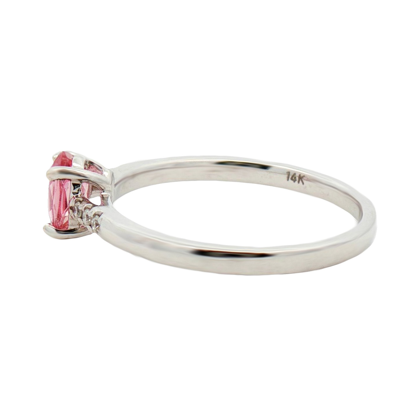 14 Karat white gold ring set with a .50 carat oval pink topaz and 6 diamonds totaling .05 carat. Current size 6 3/4.