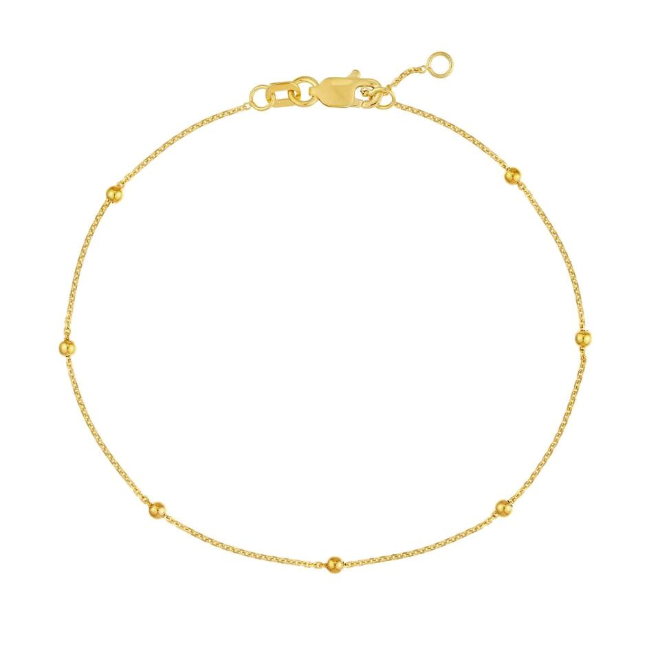 14 Karat yellow gold 7/7.5″ diamond-cut saturn chain bracelet with 7 – 2 mm beads.