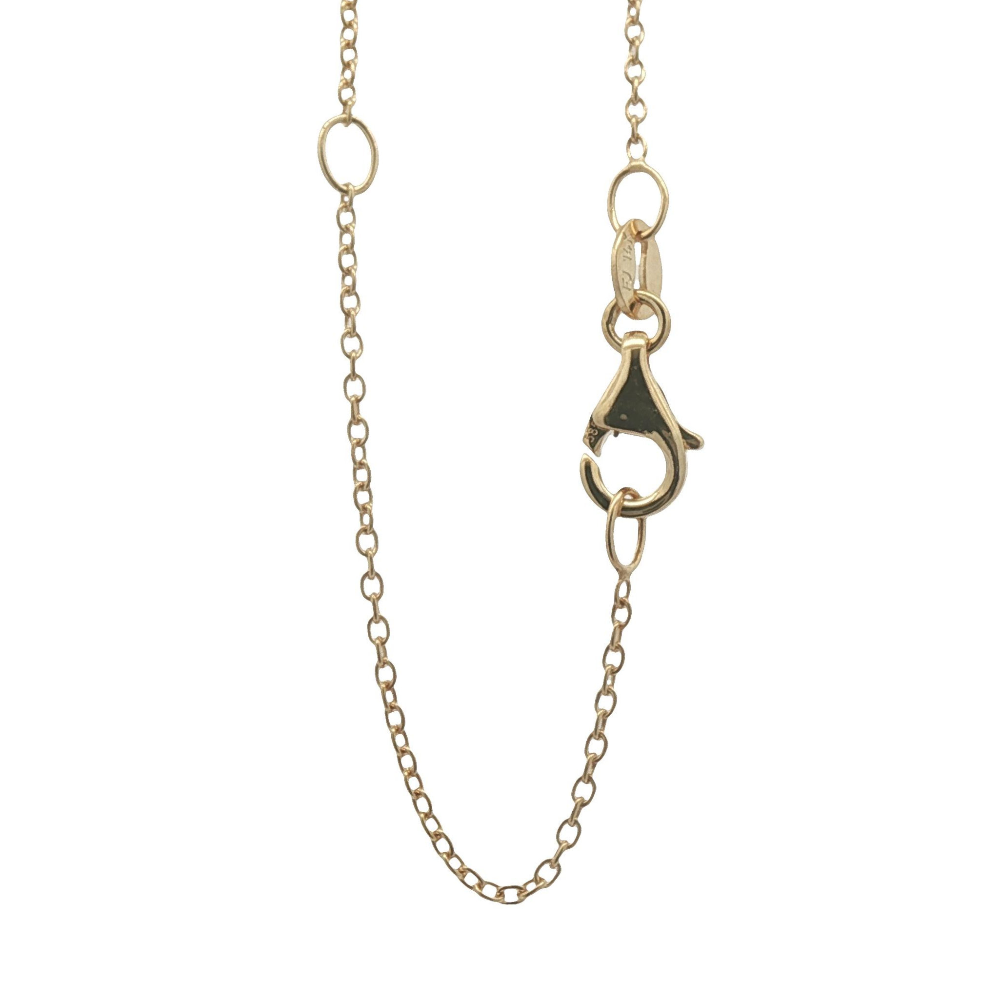 14 Karat yellow gold cluster pendant set with 4 diamonds on a 16/18″ 14 Karat yellow gold adjustable cable chain with teardrop clasp.