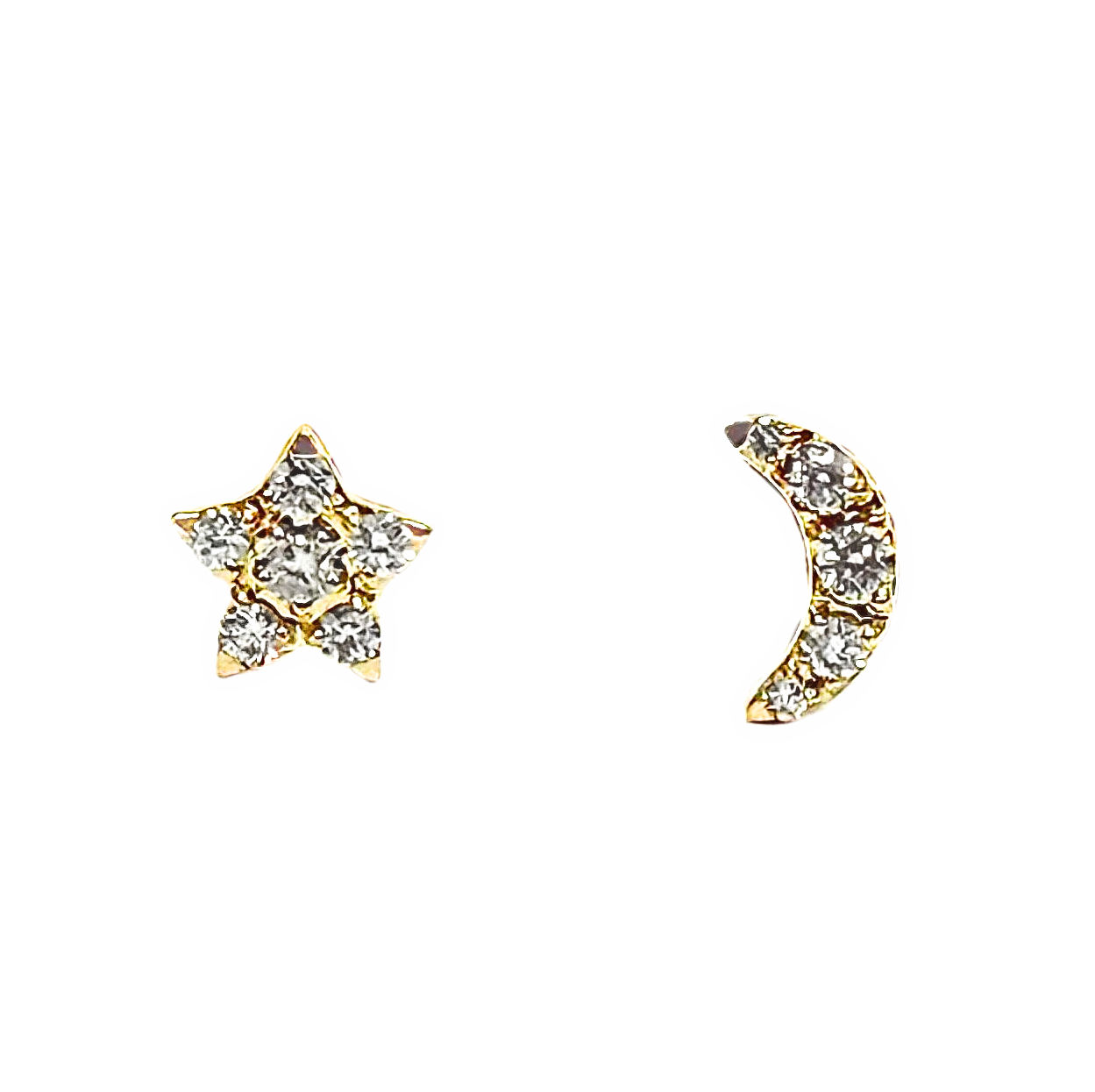14K YELLOW GOLD DIAMOND MOON & STAR STUD EARRINGS