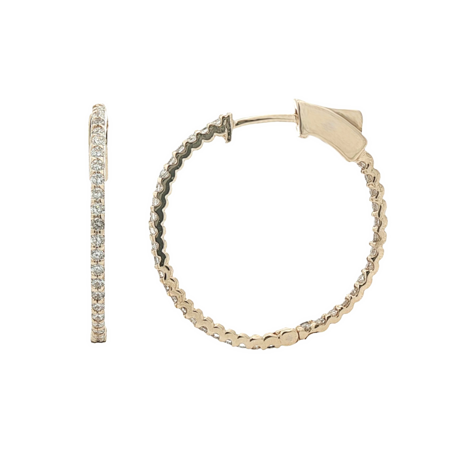 14 Karat yellow gold in-and-out hoop earrings set with 74 diamonds totaling .79 carat. 1″ in diameter.