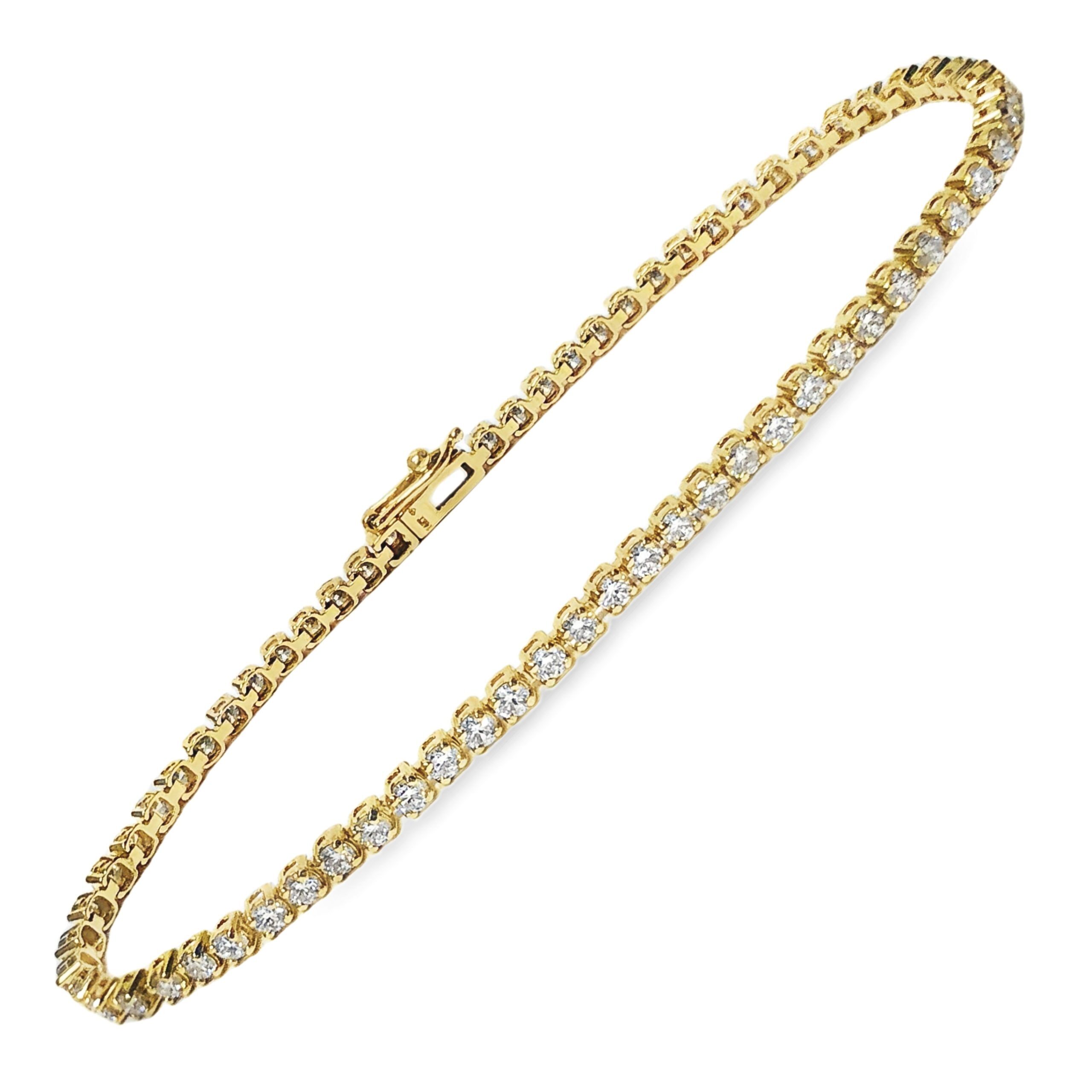 14 Karat yellow gold inline bracelet set with 67 lab-grown diamonds totaling 3.03 carats. 7 1/4″
