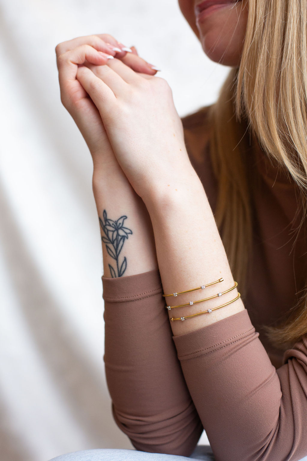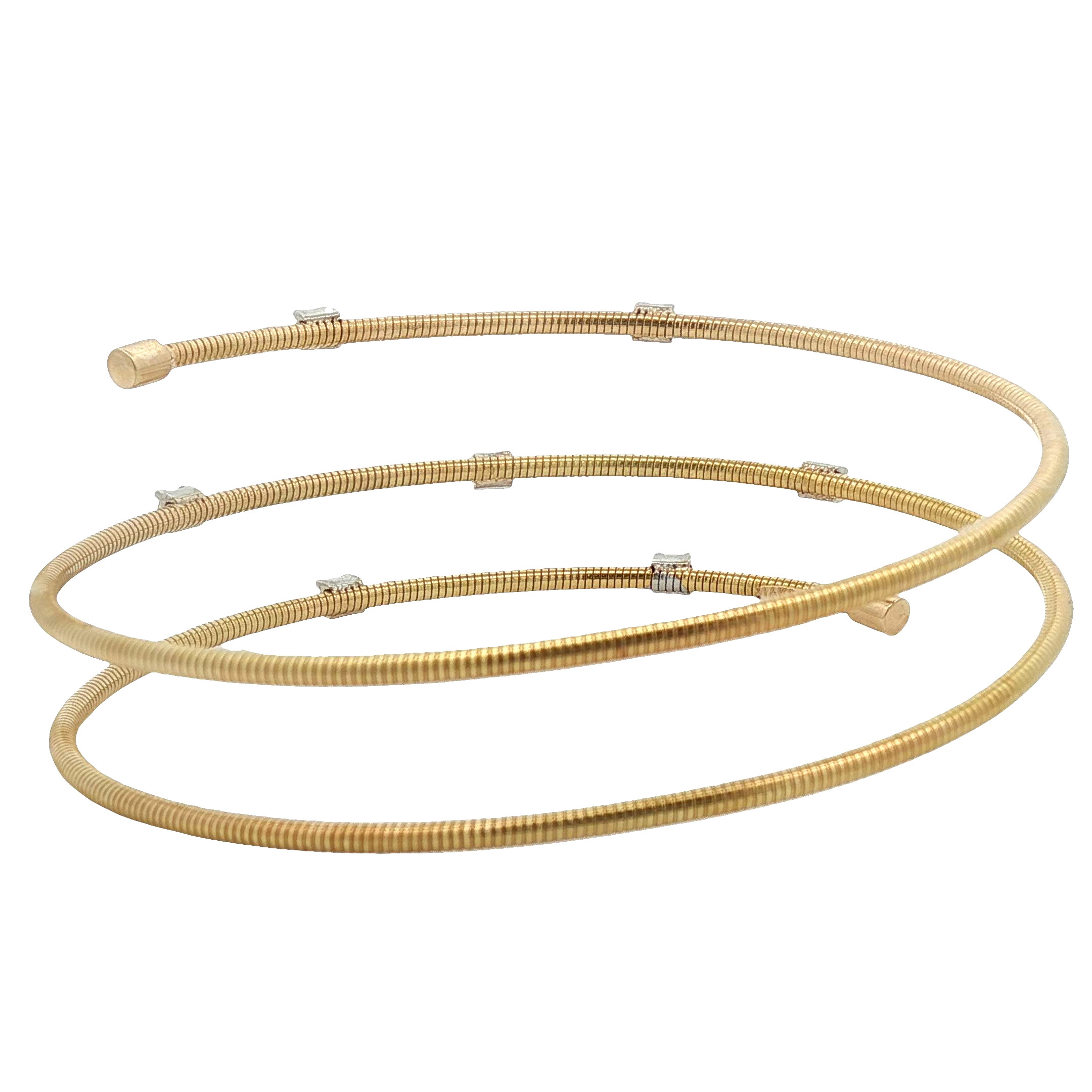 14 Karat yellow & white gold flexible spiral bracelet set with 7 diamonds totaling .30 carat.