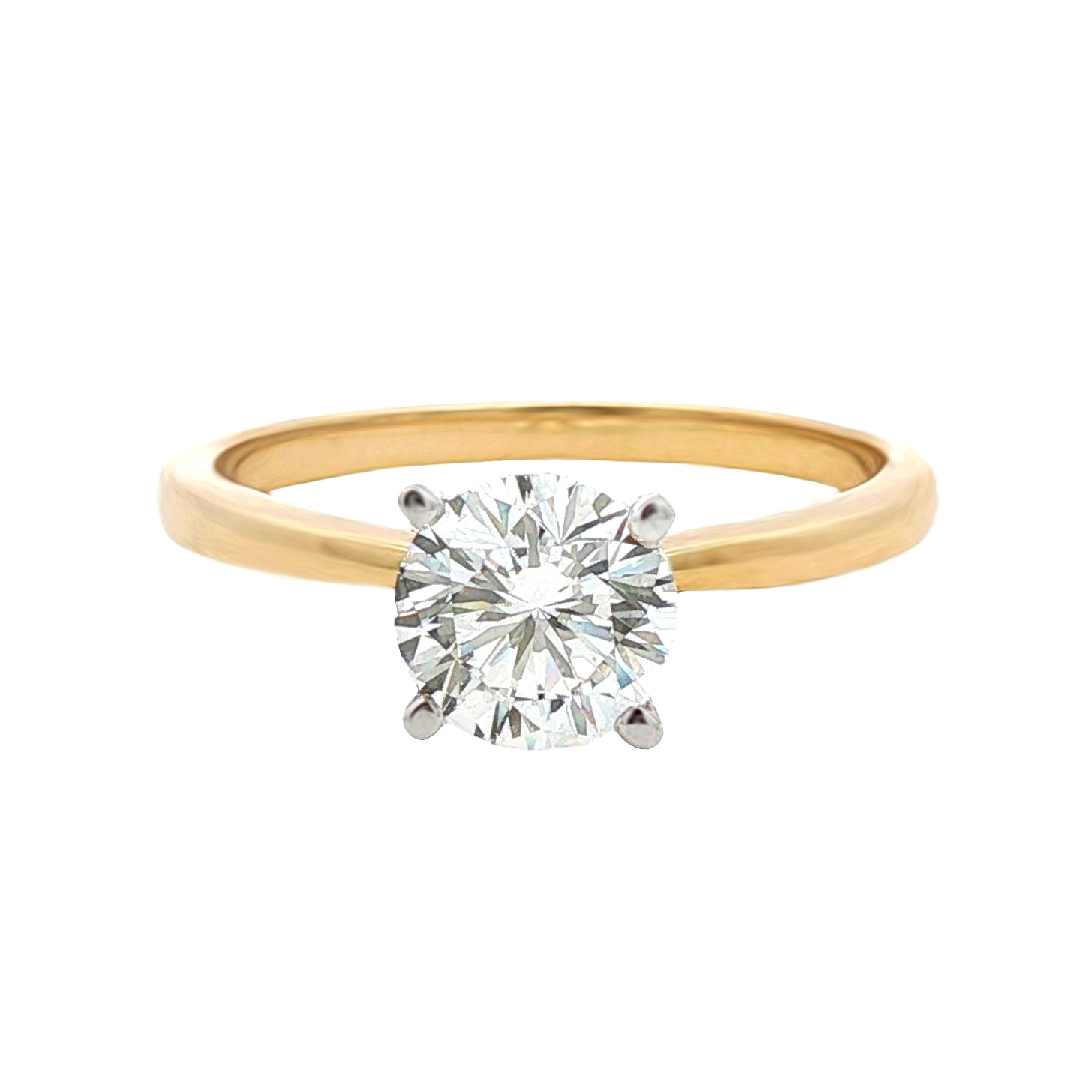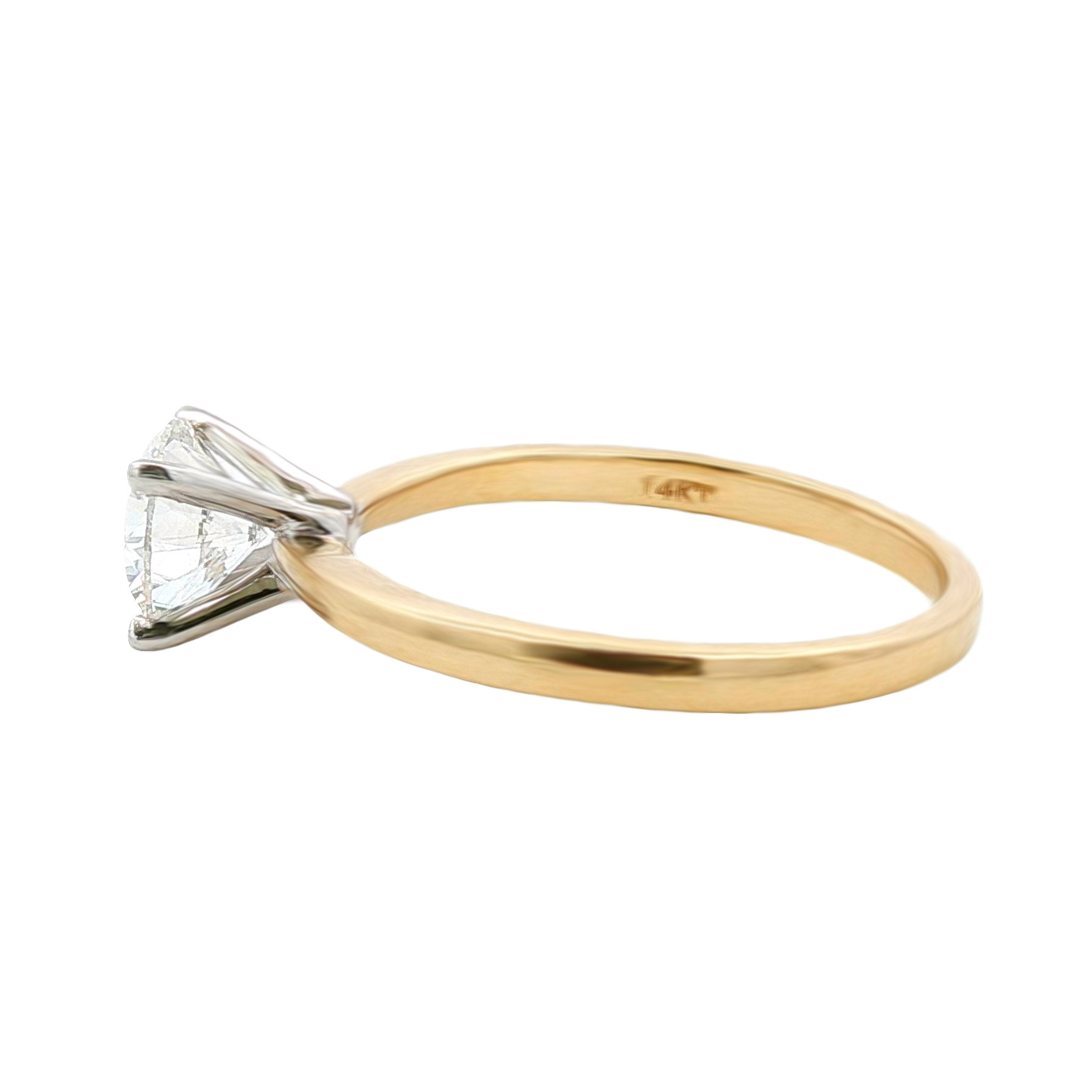 14 Karat yellow & white gold solitaire ring set with one 1-carat lab-grown diamond. Current size 7.