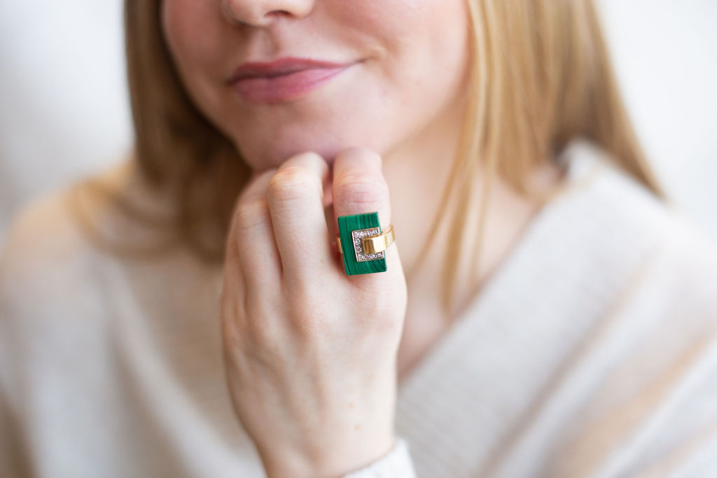 14K YELLOW & WHITE GOLD MALACHITE DIAMOND RING