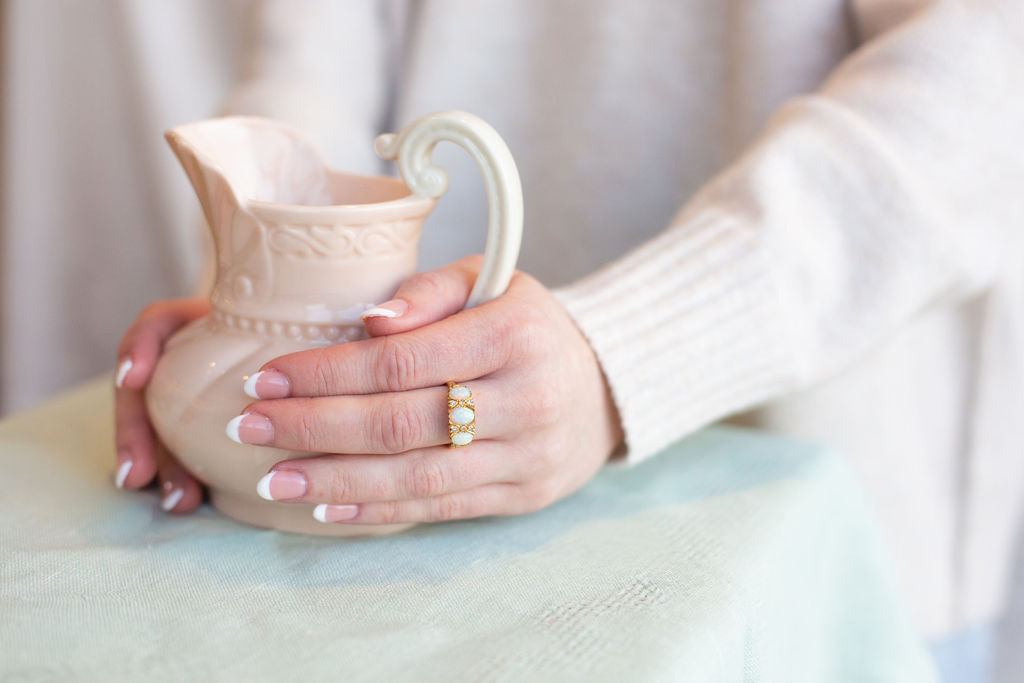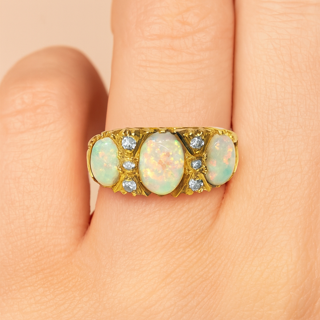 18K YELLOW GOLD VINTAGE OPAL & DIAMOND FILIGREE RING