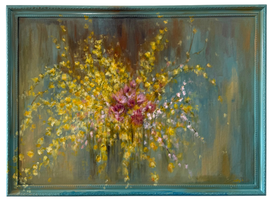 Acrylic on canvas in wood frame by Abby Elise – 49″ x 36″