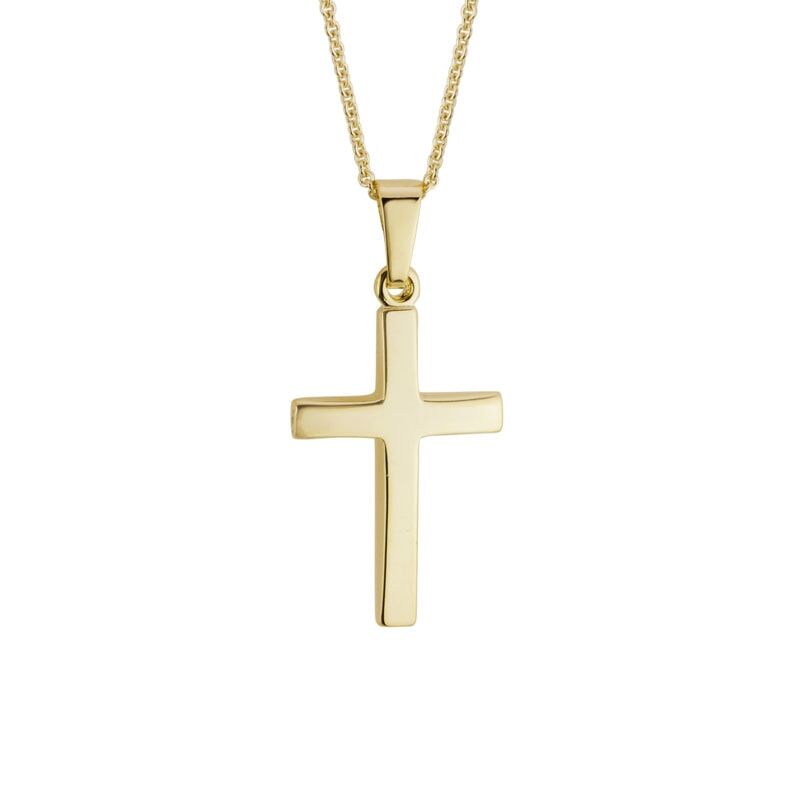 14 Karat yellow gold cross 18.5 mm pendant on 16/18″ adjustable chain.