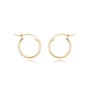 14 Karat yellow gold hoop earrings measuring 1.5mm thick by 12mm diameter.