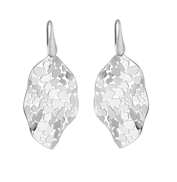 Sterling silver mosaic leaf dangle earrings approximately 65mm long.