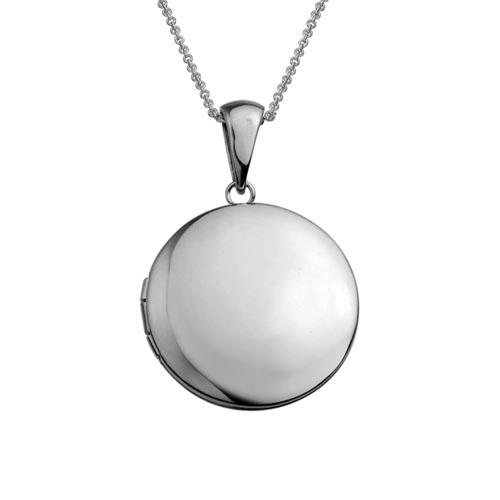 Sterling silver 19 mm round locket on 16-18″ adjustable cable chain. This item is engravable.