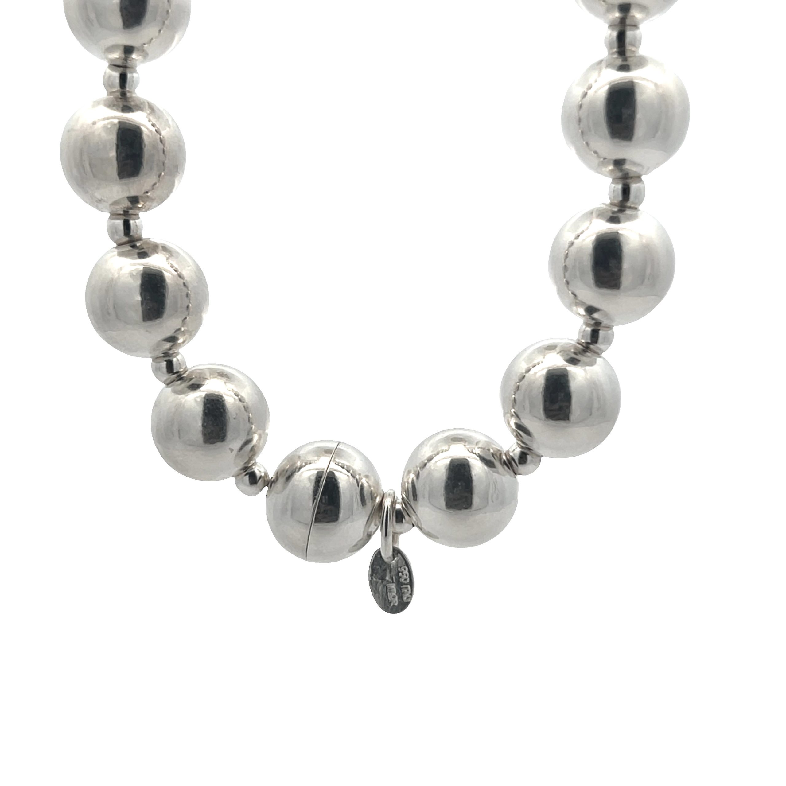 Sterling silver necklace with 10 mm & 3 mm beads. 20″. Pre-owned.
