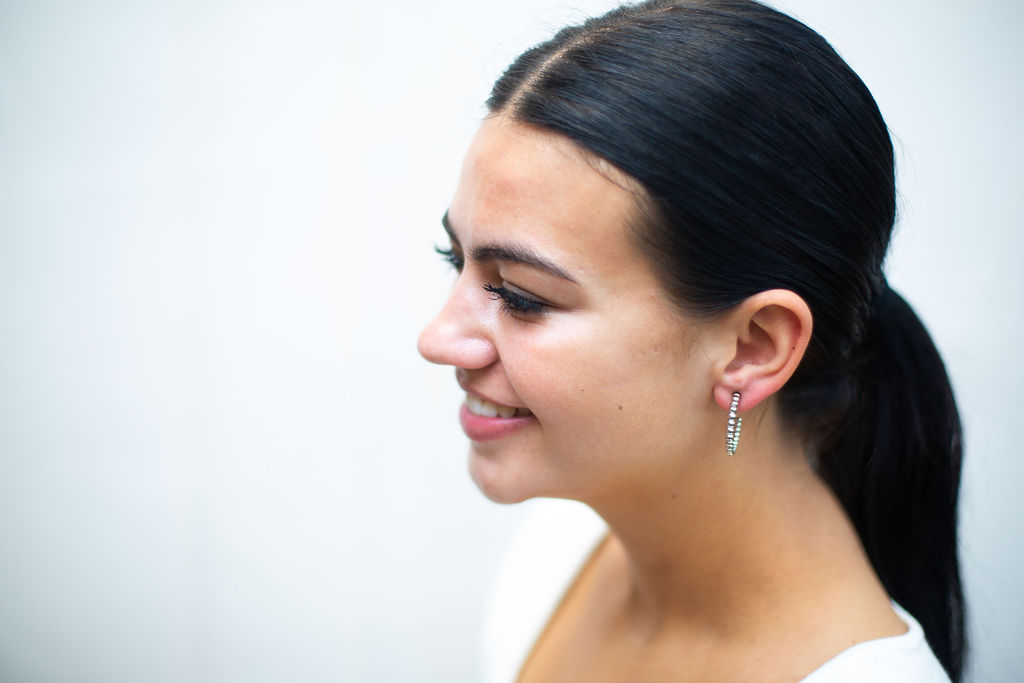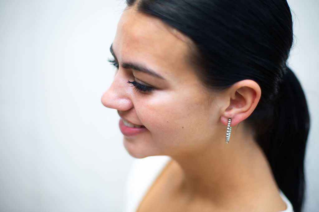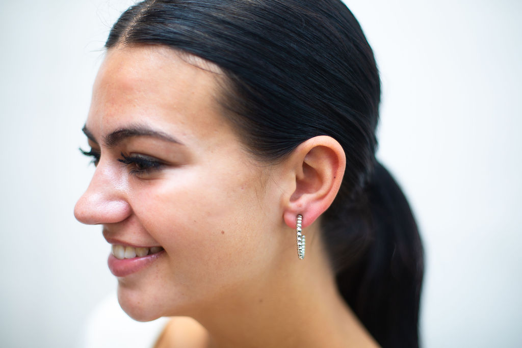 Sterling silver graduated bead design hoop earrings. Friction backs. 1″ in diameter.