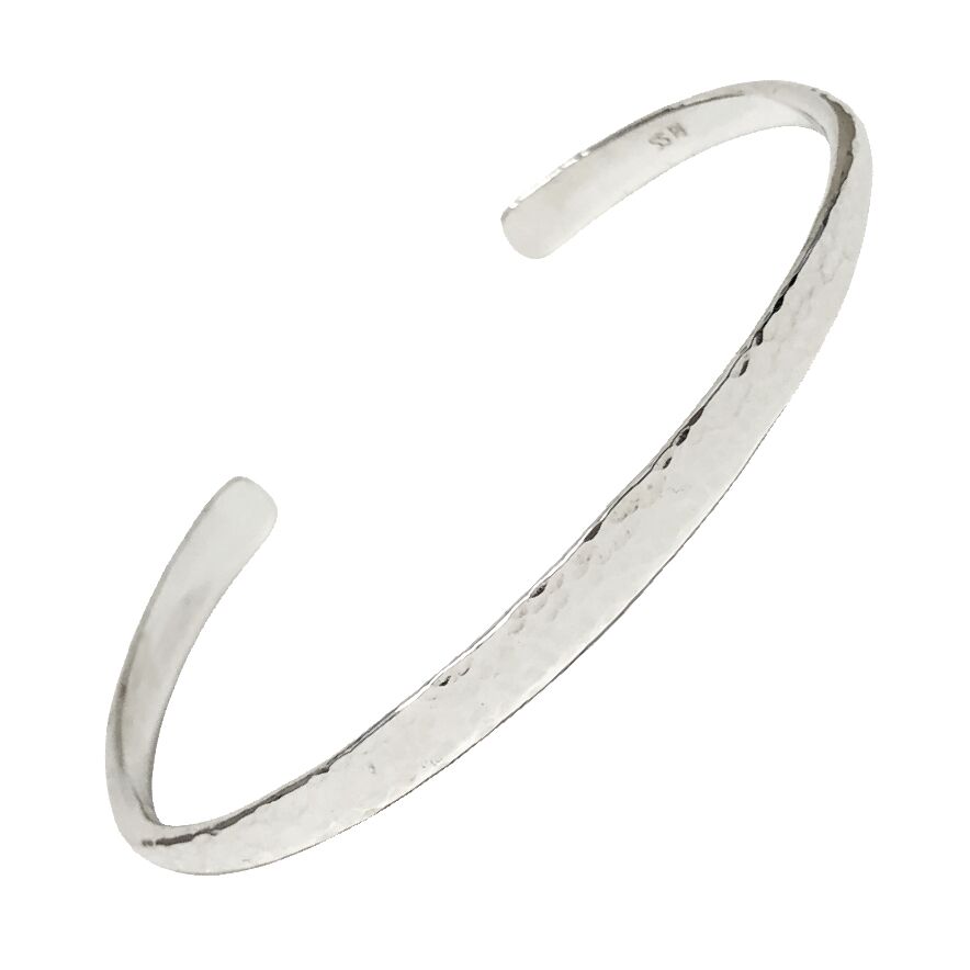 Sterling silver hammered finish tapered narrow cuff bracelet.