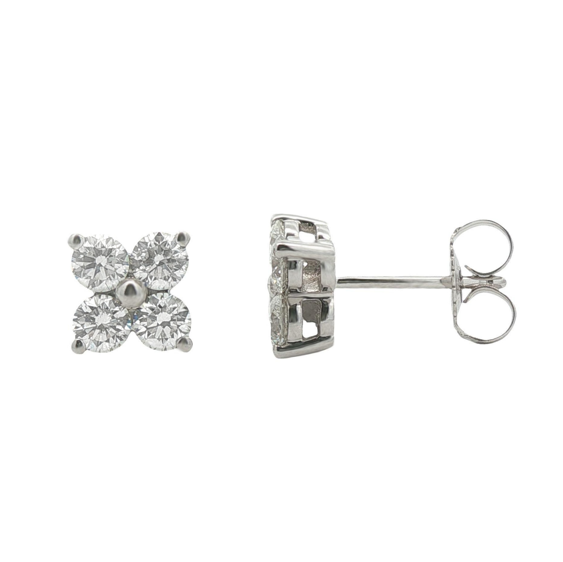 14 Karat white gold cluster stud earrings set with 8 diamonds.