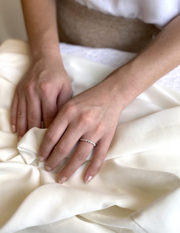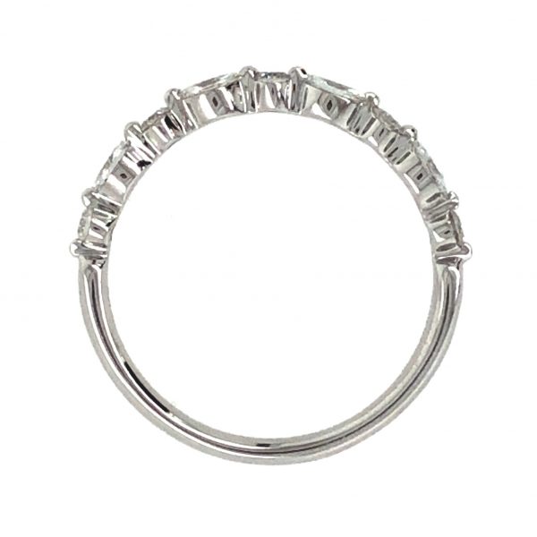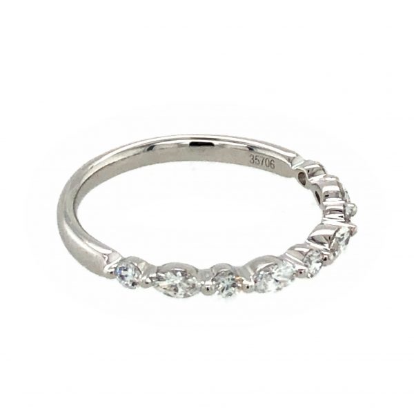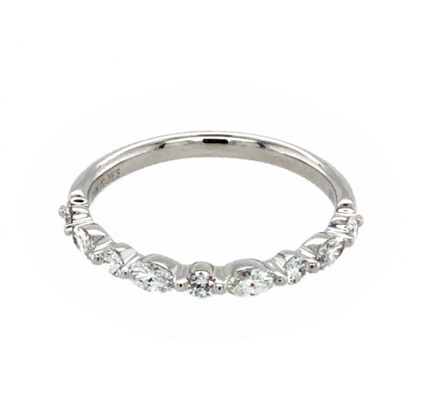 18 Karat white gold wedding ring set with 5 full cut round and 4 marquise diamonds totaling .43 carat. Current size 6 1/2.