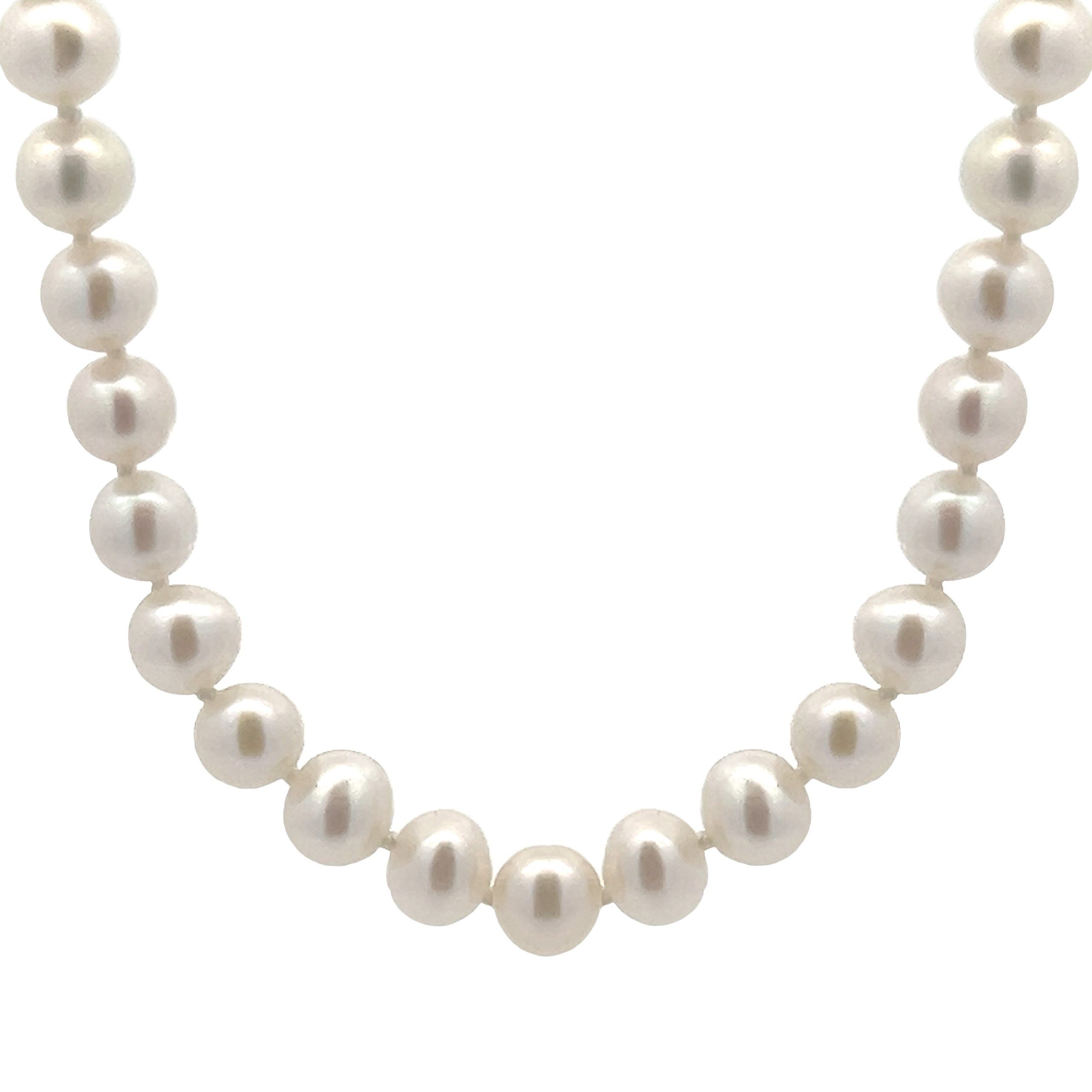 18 1/2″ 78 – 5.0-6.0 mm freshwater pearl necklace with 14 Karat yellow gold filigree fishhook clasp. Pre-owned.