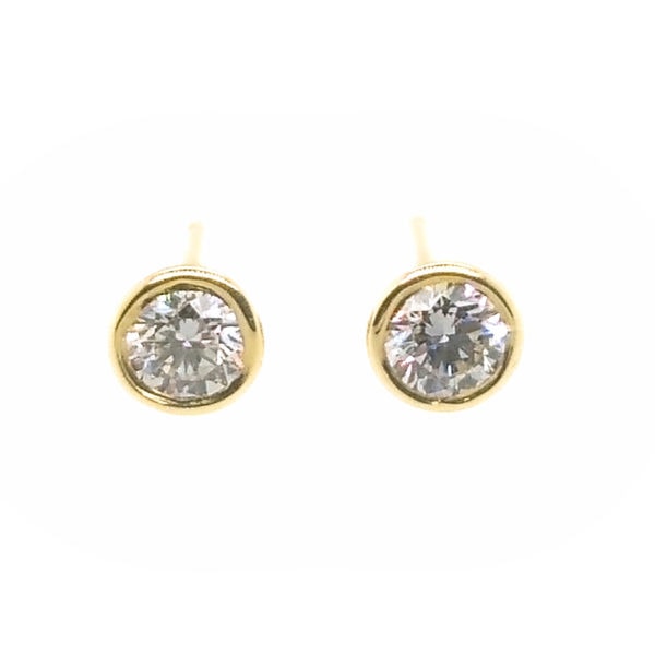 14 Karat yellow gold bezel set diamond stud earrings. Friction backs.