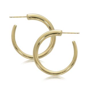 14 Karat yellow gold hoop earrings with post and friction back. Approximately 1″ diameter.